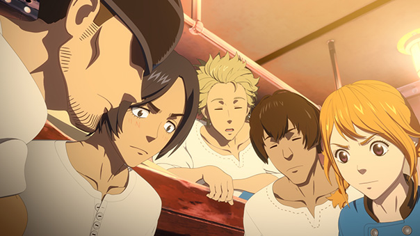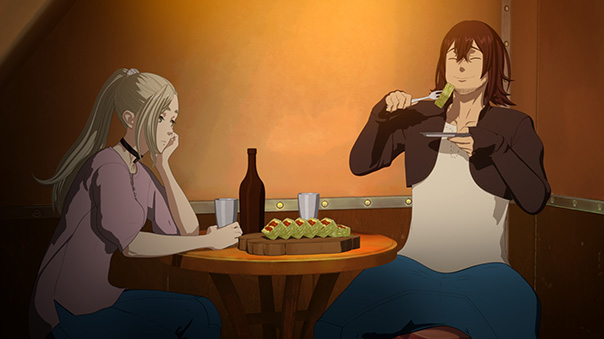 第4話『乗船理由と龍のテリーヌ』 タキタが偶然見つけた一枚の紙。そこには眠るヴァナベルの艷やかな姿が! こんな絵を描くために女の寝室に忍び込むとは……けしからん! 状況証拠で絞り込まれた容疑者候補は3人。船員たちは面白半分で犯人を絞り込もうとするが、ヴァナベル本人はといえば、馬鹿げた騒動を気にすることもなく、物思いに耽っていた。そこに現れた中型の龍。戦いの最中、ミカの姿にヴァナベルが感じたものは――。 Back